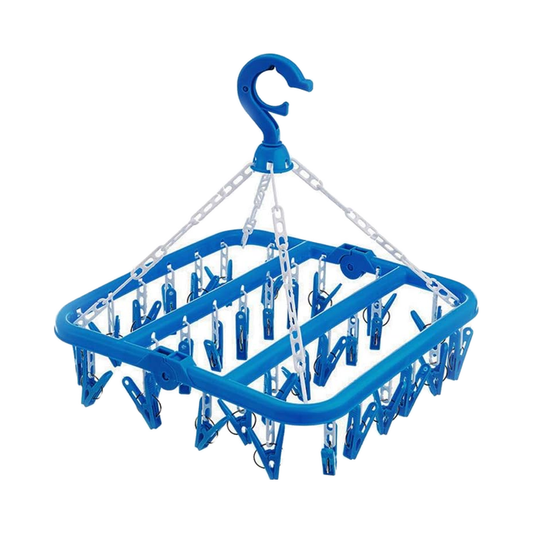 Single-Tier Foldable Plastic Metal Hanger with 32 Clips for Home Use-Clothes Drying Rack for Storage of Dresses Underwear Socks